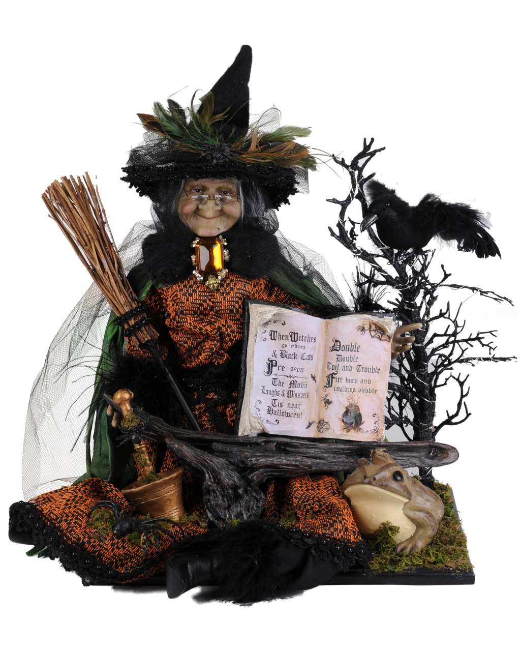 Lieferumfang: 1 x Beleuchtete Geisterhexe mit Kröte & Zauberbuch 50cm