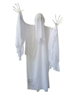 Ein Wind geht durch die alten Schlossmauern, und plötzlich steht es mit schwarzen Augenhöhlen vor dir: Unser lebensgroßes Gespenst mit Bewegung ist eine XL- Halloween Deko, die deinen Gästen das Fürchten lehrt. Mit seinem weißen Gewand, den knöchernen Händen und einer Totenkopf Fratze sorgt das Deko Gespenst für Unbehagen! Sieh zu, wie es Kopf und Arme bewegt, während ein geisterhafter Sound ertönt.