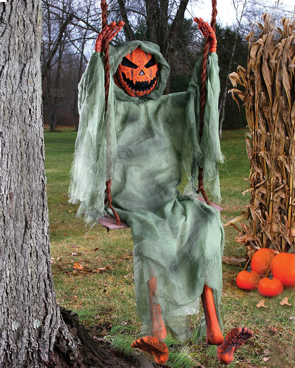 Lieferumfang: 1 x Schaukelndes Kürbis Skelett 150 cm
