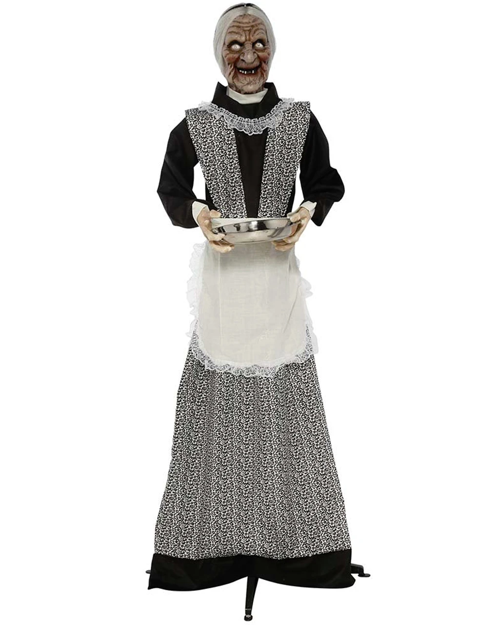 Untote Zombie Magd als sich bewegende Standfigur mit Servierteller, Leuchtaugen & Sound